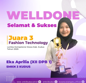 SMK Negeri 3 Kudus merupakan sekolah menengah kejuruan unggulan yang berkomitmen menghasilkan lulusan kompeten, mandiri, dan berdaya saing tinggi. Dengan slogan “Unggul, Berani, Berkarya”, sekolah ini terus mengembangkan pembelajaran berbasis industri serta fasilitas praktik lengkap untuk mendukung pendidikan vokasi yang modern dan relevan dengan kebutuhan dunia kerja.